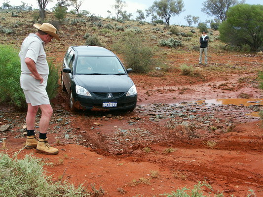 Als am nächsten Morgen die Straße immer noch unter Wasser stand waren wir über die Hilfe des Rangers sehr froh. Er konnte uns noch einen zweiten Weg, querfeldein und durch einen kleinen Fluß, zeigen.