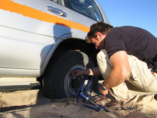 Da hilft nur eins: die Luft muss raus! Von 50 auf 16PSI - auf das Gepumpe morgen, wenn es wieder auf die Straße geht, freuen wir uns jetzt schon!